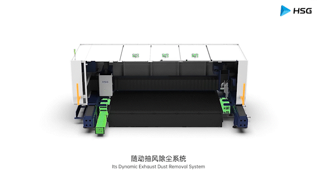 ? 隨動抽風除塵系統:同步切割路徑抽煙排塵,打造潔凈、環保的生產環境。