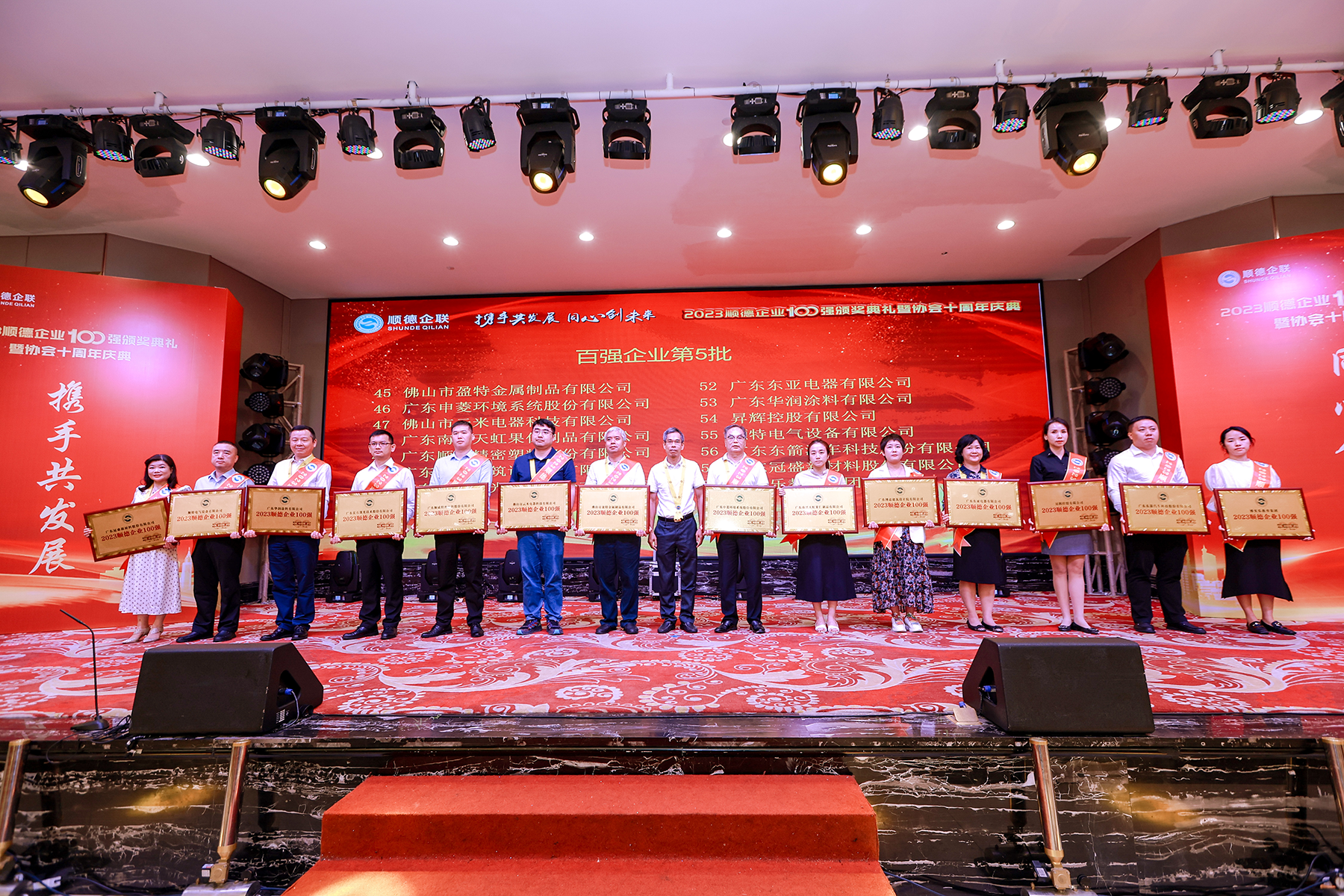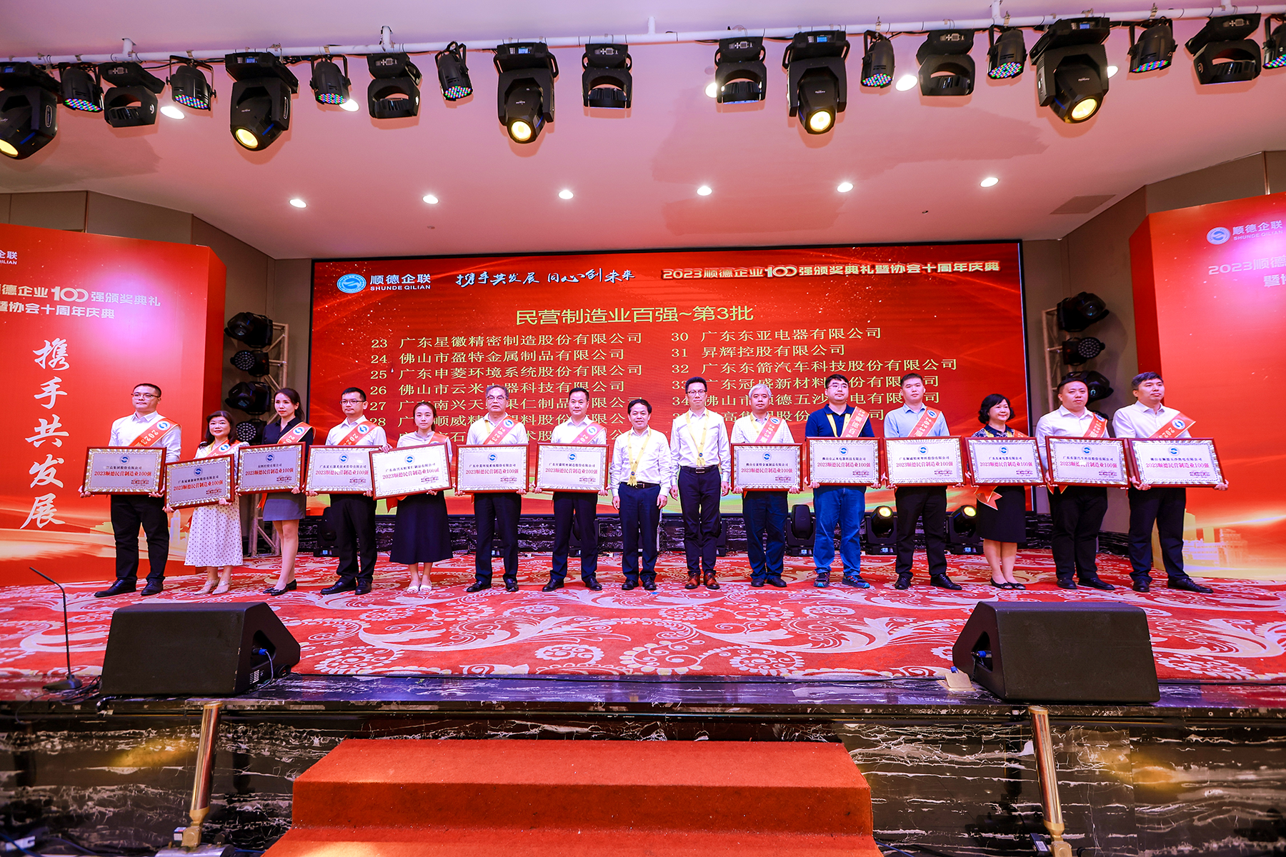 10月18日,由順德區企業聯合會、順德區企業家協會主辦的“2023順德企業100強頒獎典禮”舉行,活動現場重磅發布“順德企業100強”、“順德民營制造企業100強”兩大榜單。兩大榜單綜合展示了順德的企業實力、城市競爭力以及城市形象。上榜企業不僅是順德區經濟發展的重要支撐力量,更是各企業前進的標桿。