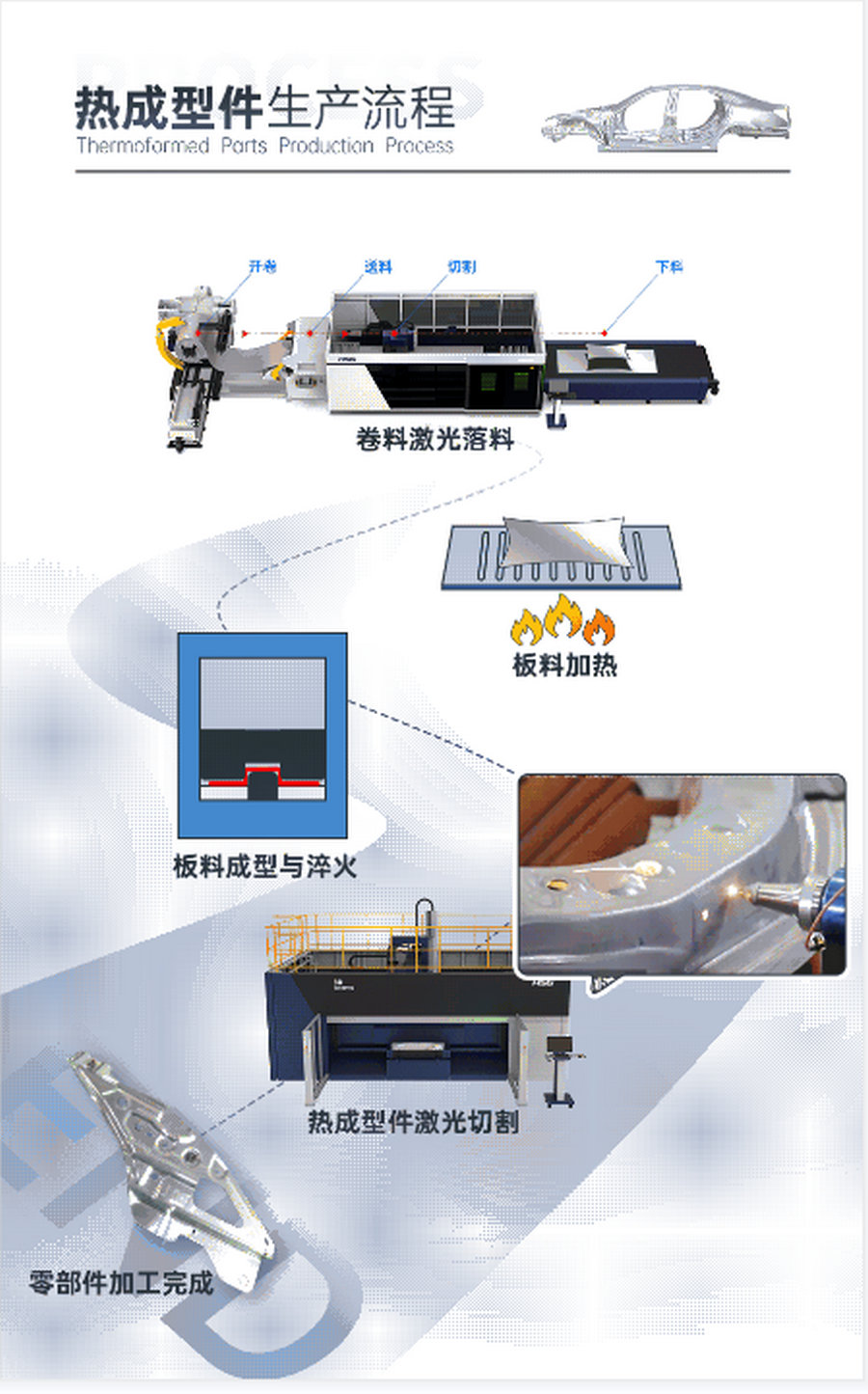 投身全球技術競賽,宏山激光Cell3015G三維五軸激光加工中心為中國制造業可持續發展注入新的生命力,作為汽車熱成型件專業解決方案,給汽車行業的發展帶來了驚喜與突破,配合3頭3梁卷料激光切割機,“穩將”煥新,提質增效,核心競爭力更上一層樓。
